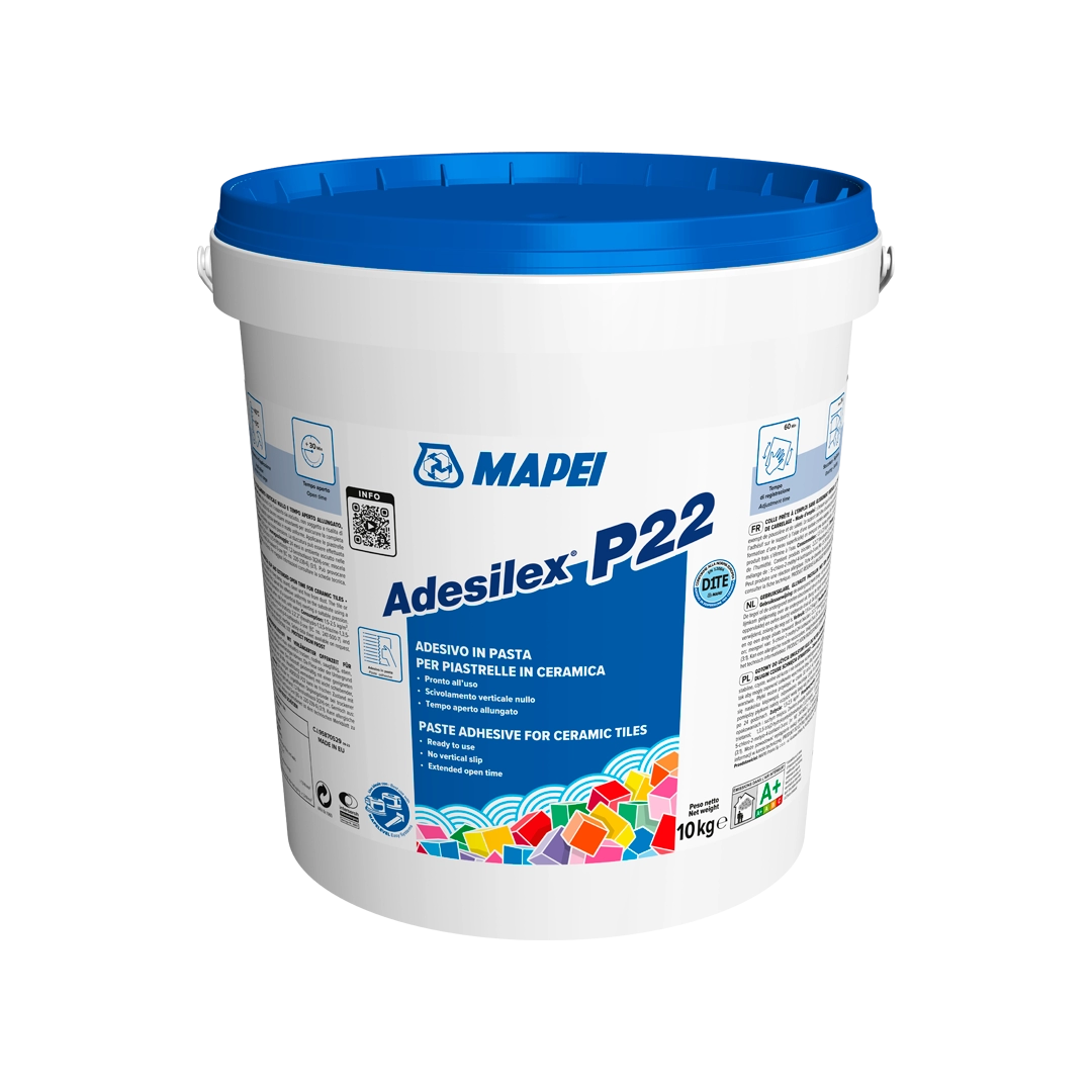 Adesivo in pasta pronto all’uso a scivolamento verticale nullo e con tempo aperto allungato, per piastrelle ceramiche